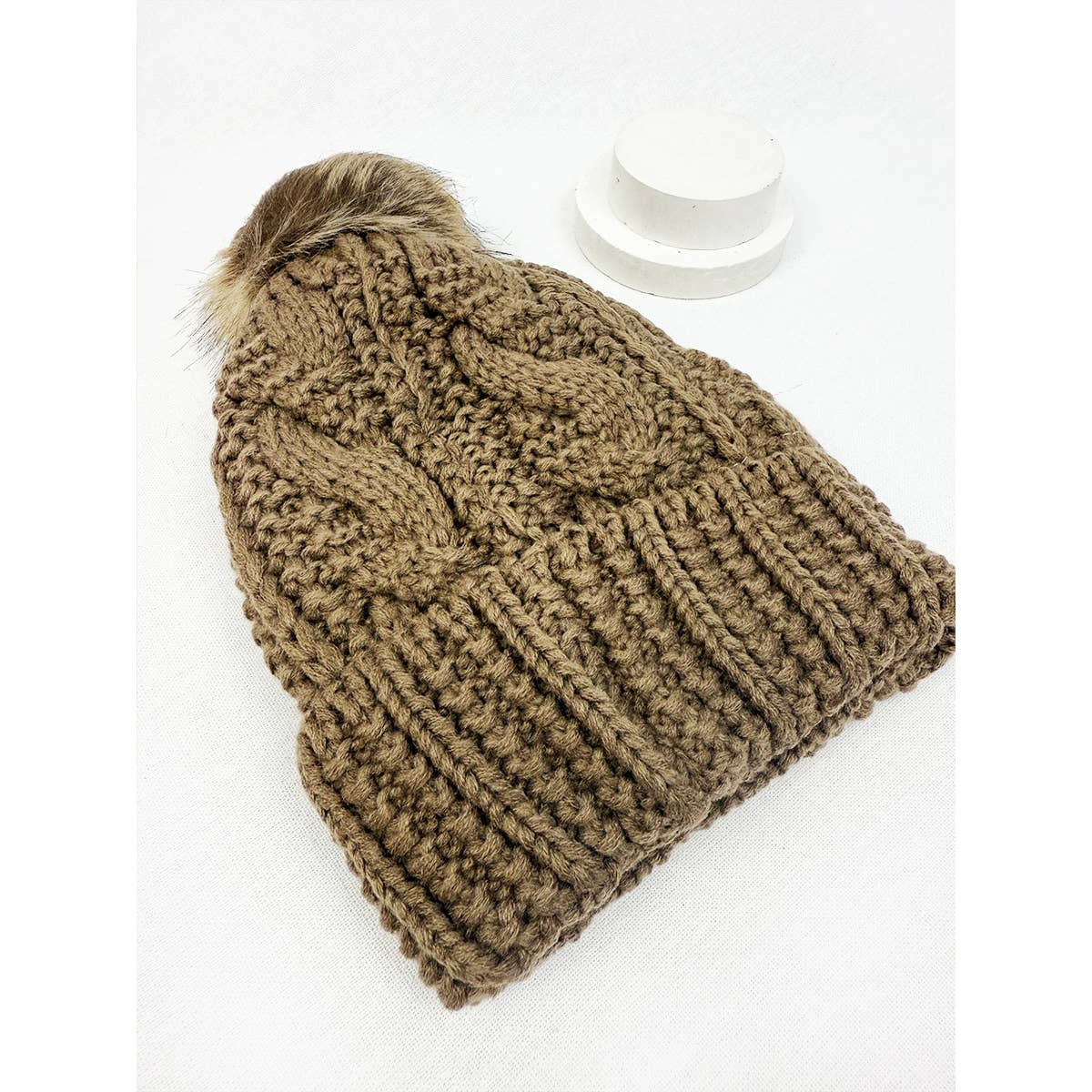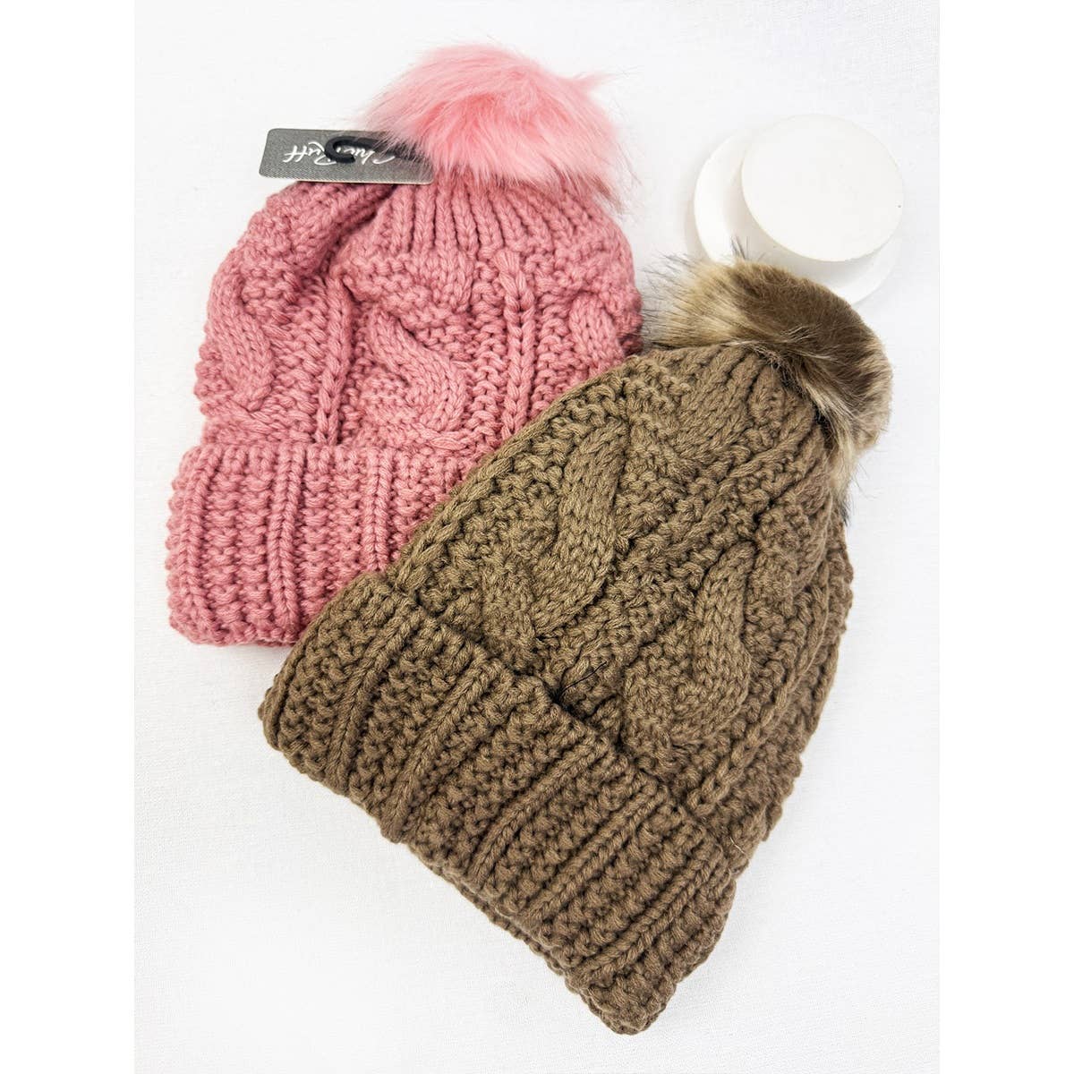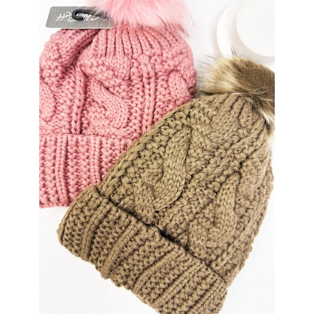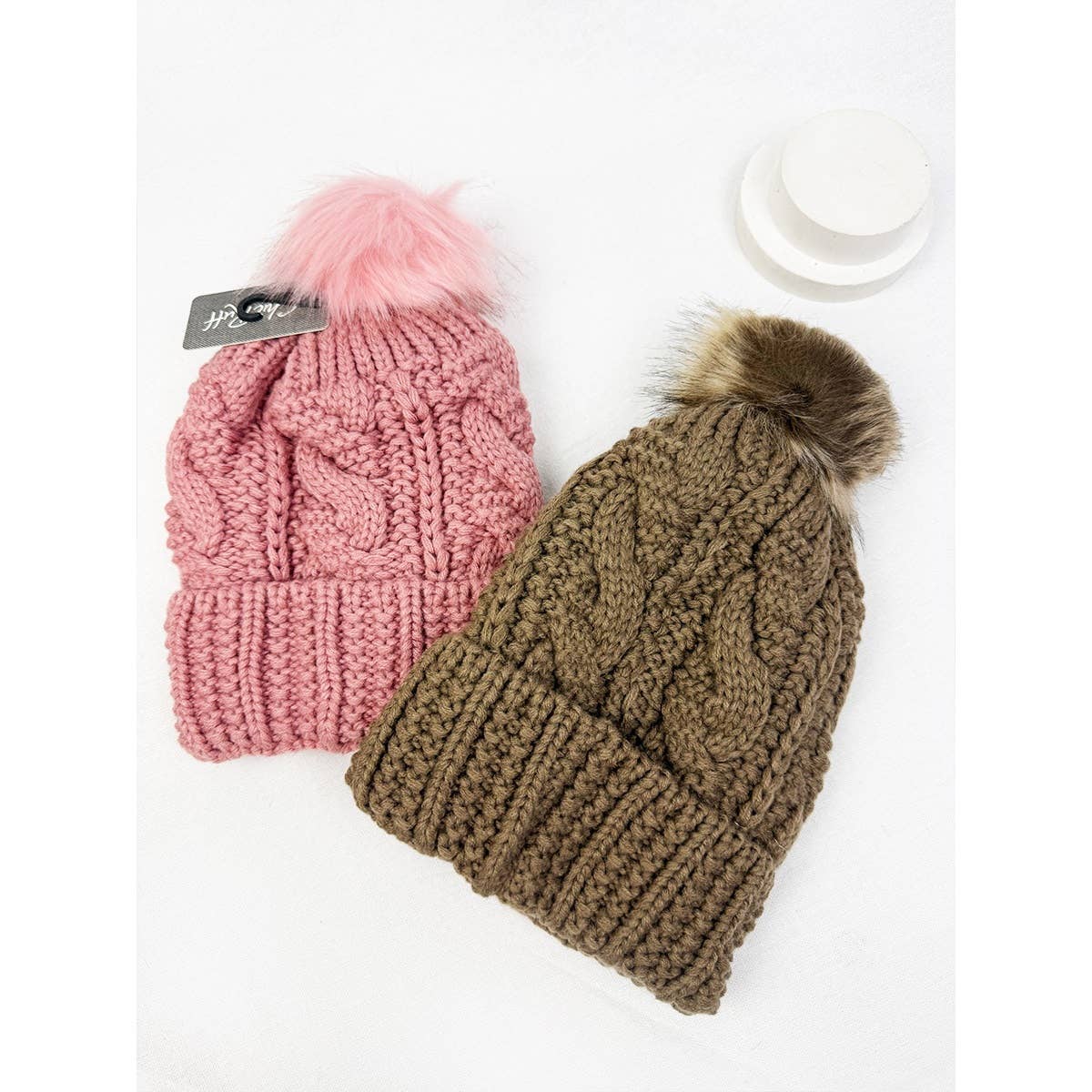 Fur Lined Pompom Crochet Beanies -One Size Fits Most -2 Colors Pompom Beanies Assorted -Dimension-100% Acrylic