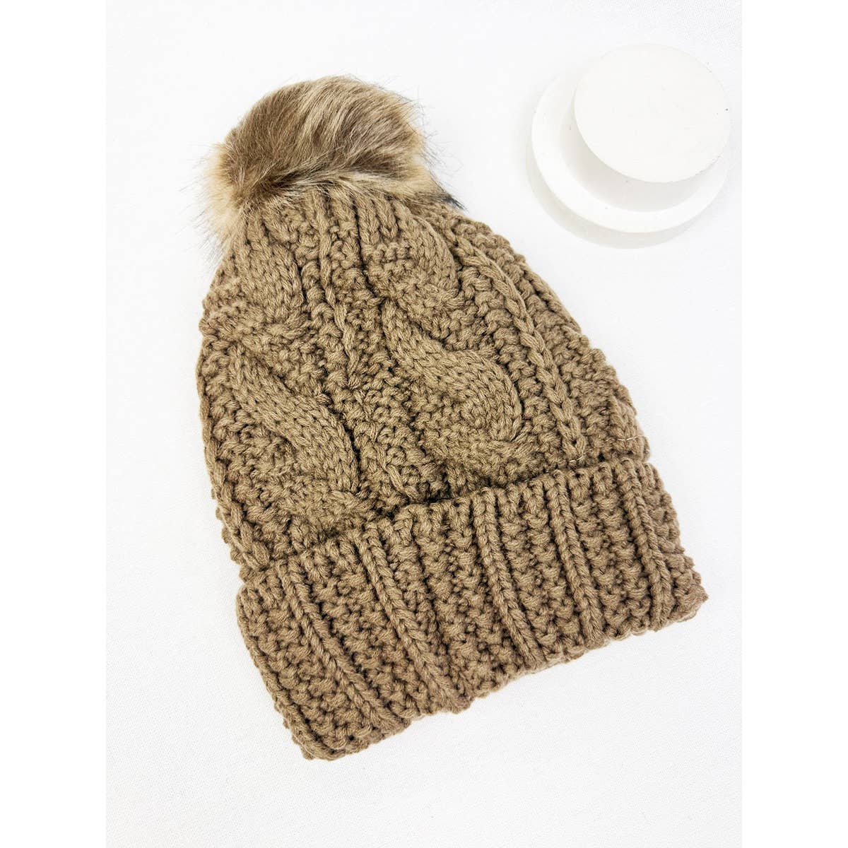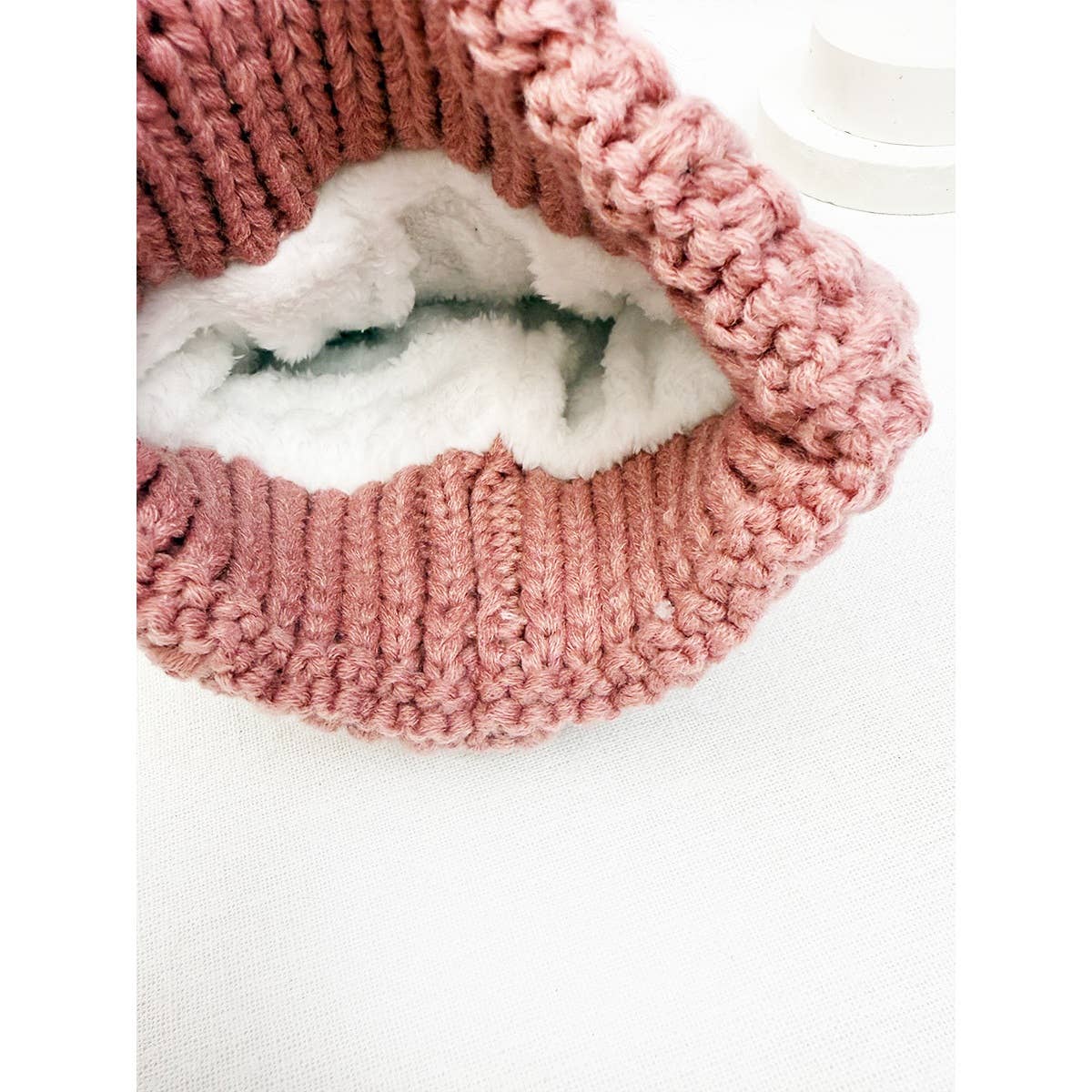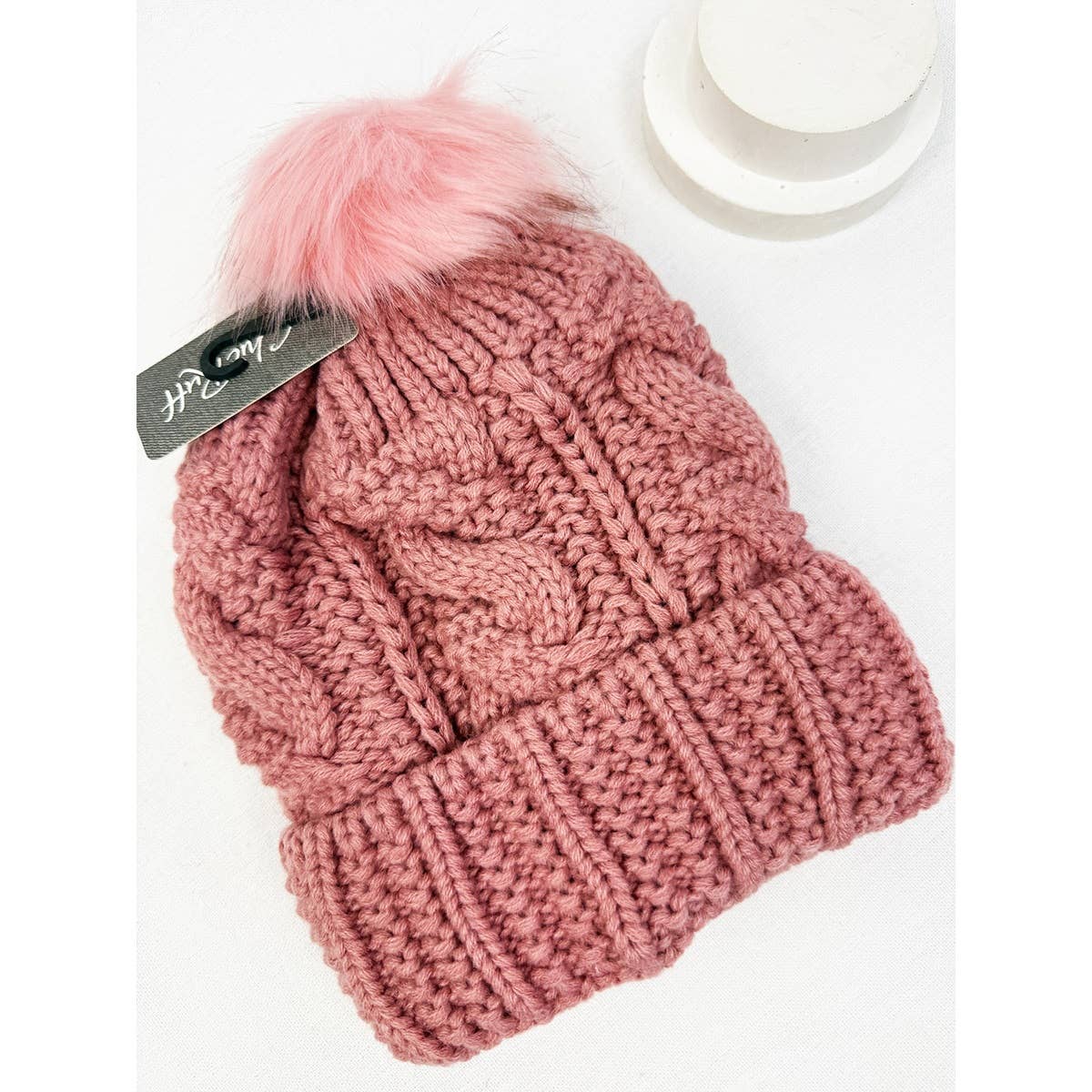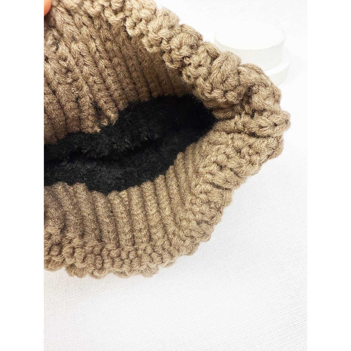 Fur Lined Pompom Crochet Beanies -One Size Fits Most -2 Colors Pompom Beanies Assorted -Dimension-100% Acrylic