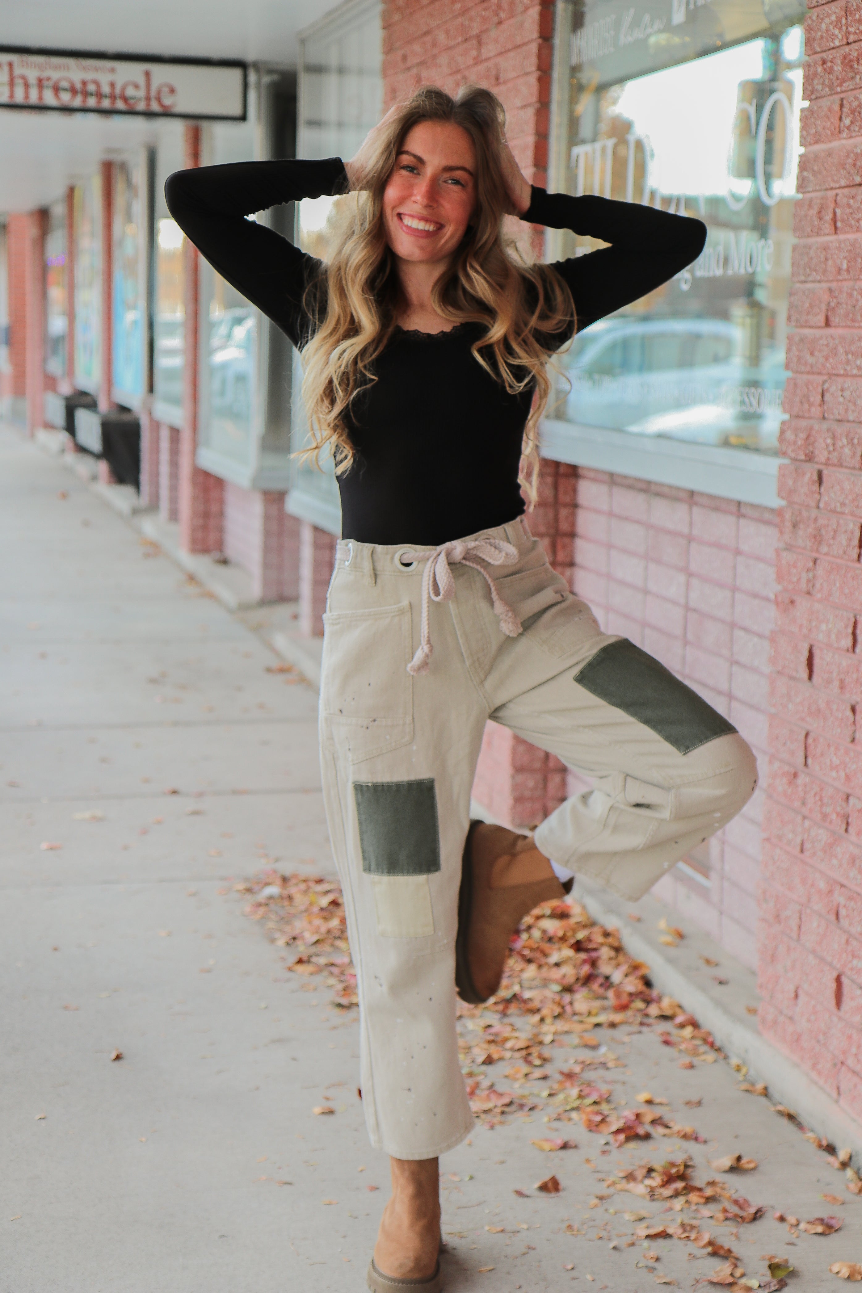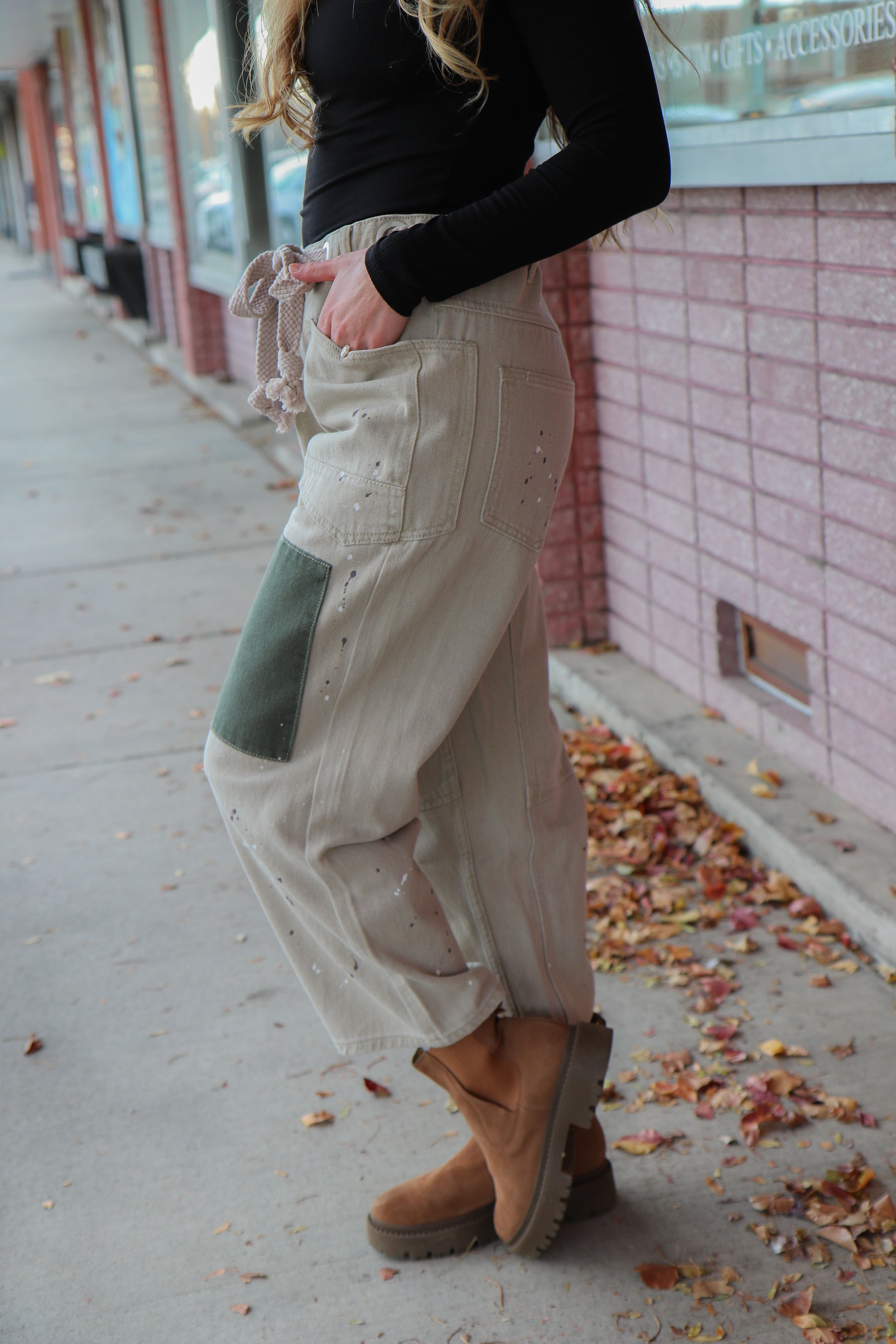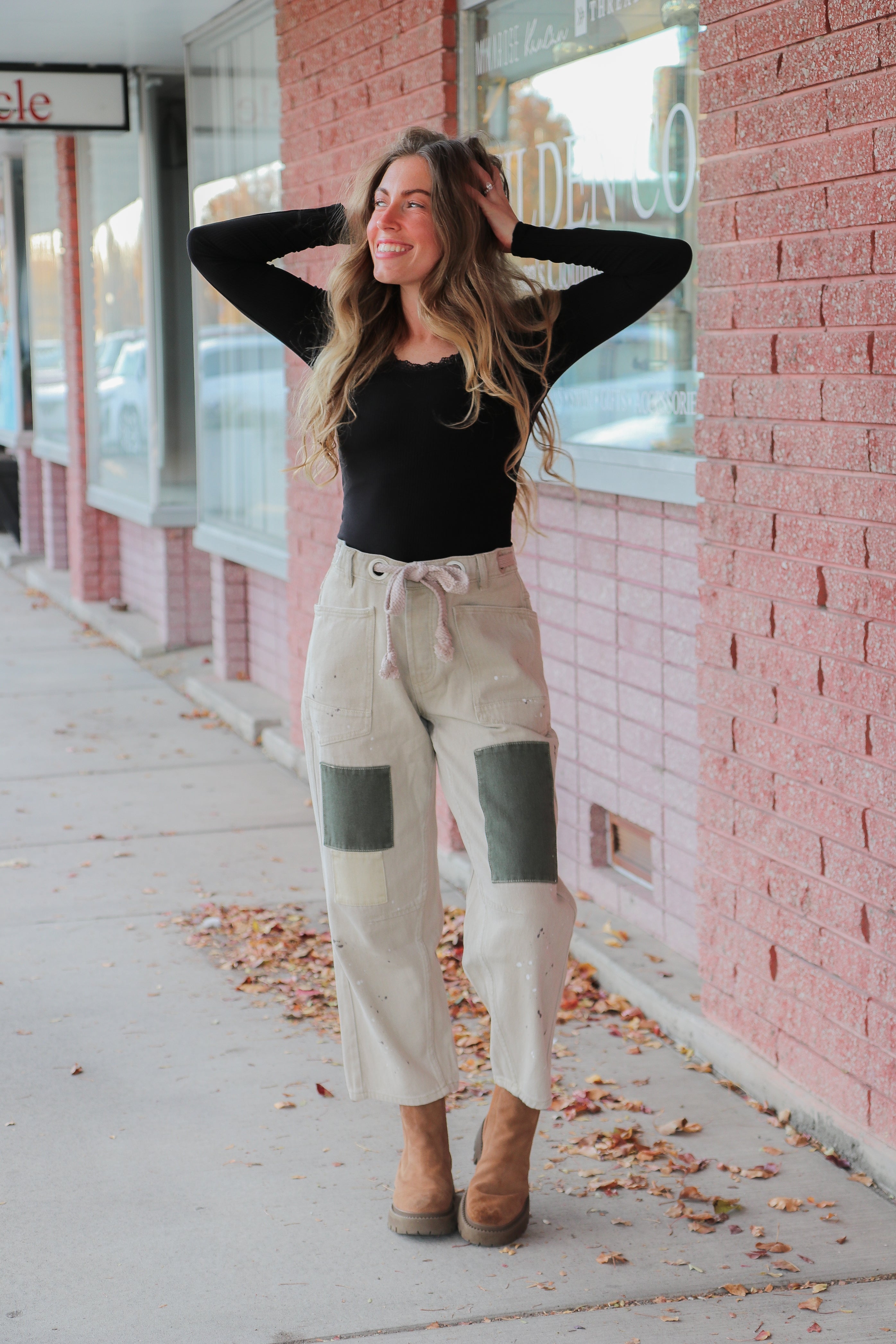 Dress up your Vintage Painted Rope Jeans with a tucked-in turtleneck sweater and ankle boots for a cozy yet elevated holiday look. Add a structured blazer or a chic cardigan for a dinner-ready outfit that feels festive but relaxed. For weekend errands or travel days, pair them with a simple tee and sneakers — the painted detail makes even your most casual looks feel intentional and stylish.