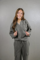 Wear the Trailsoft Fleece Half Zip Hoodie with the matching Trailsoft Fleece Cargo Pant for a cohesive, elevated lounge look that feels intentional but effortless. Style with sneakers for casual days, slides for cozy nights in, or layer over a fitted tank for extra dimension. The half-zip design lets you play with proportions while keeping things comfortable and flattering.