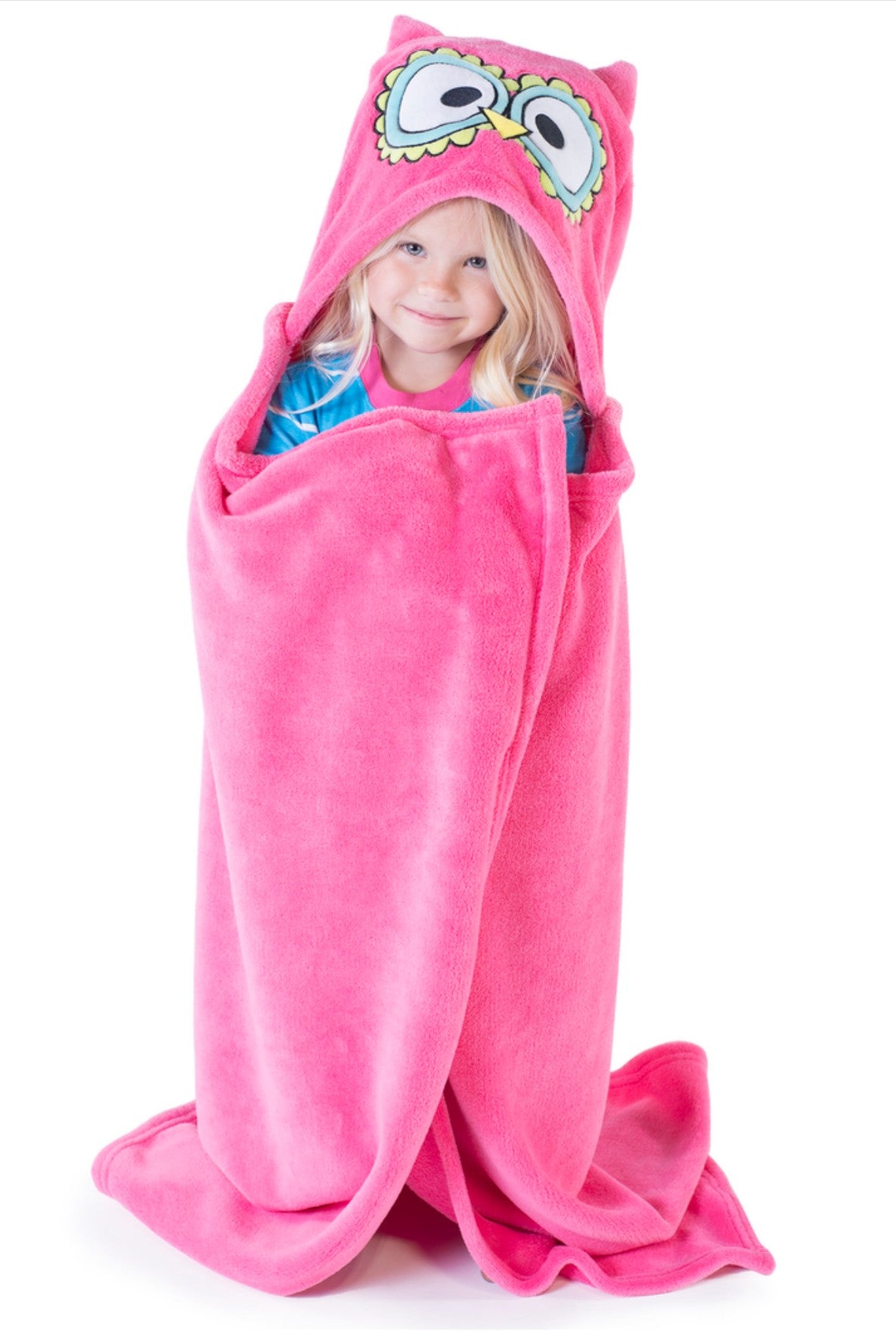 Pink Owl Kid's Hooded Blanket
