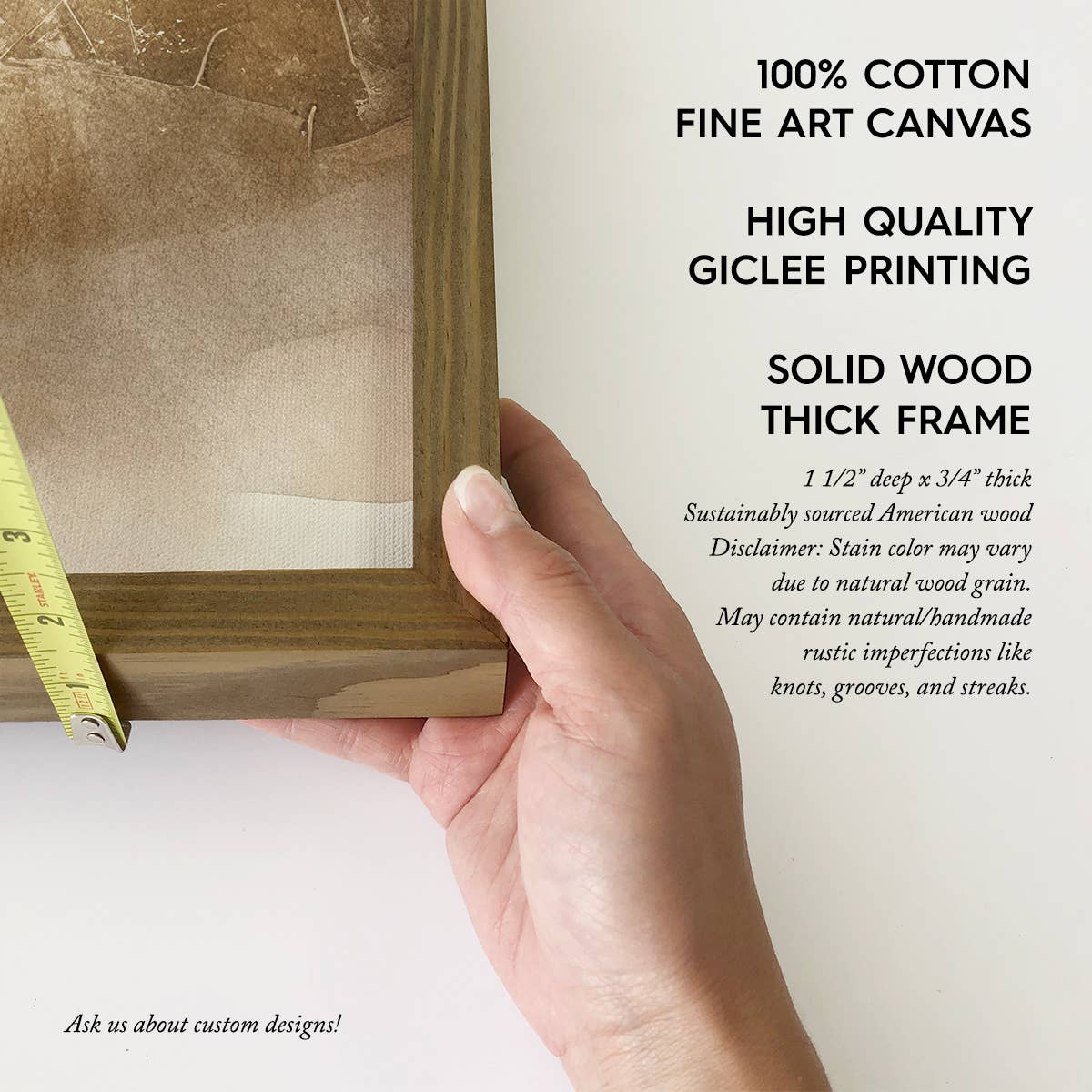 • Printed with high resolution giclee inks • Fine art canvas mounted on wood • Solid hardwood frame in shown stain colors • Sustainable American alder wood • Made in Utah, USA