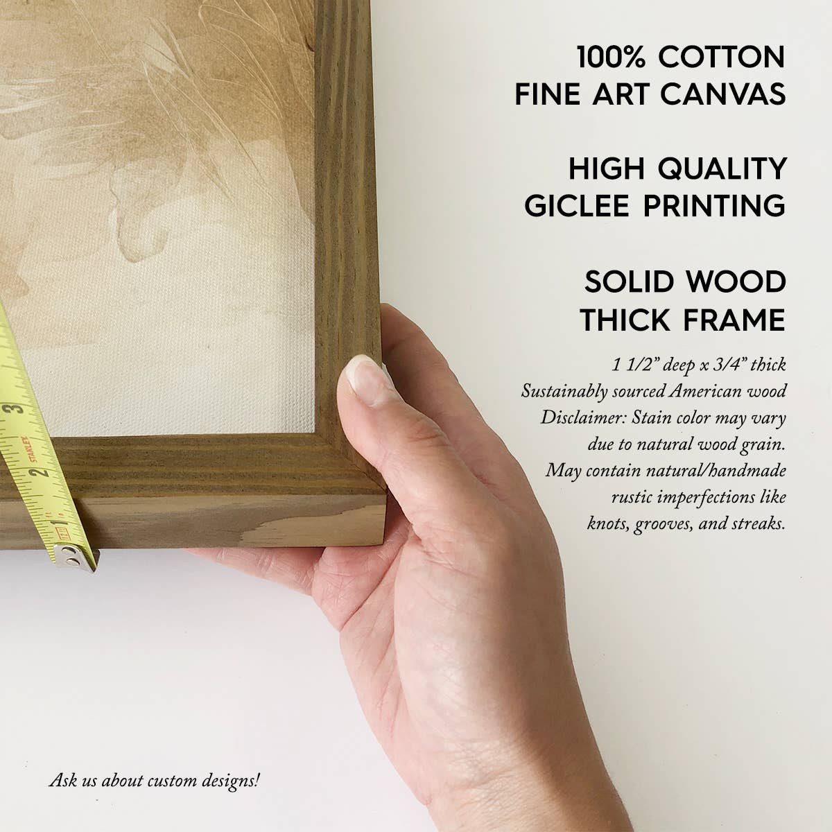 • Printed with high resolution giclee inks • Fine art canvas mounted on wood • Solid hardwood frame in shown stain colors • Sustainable American alder wood • Made in Utah, USA