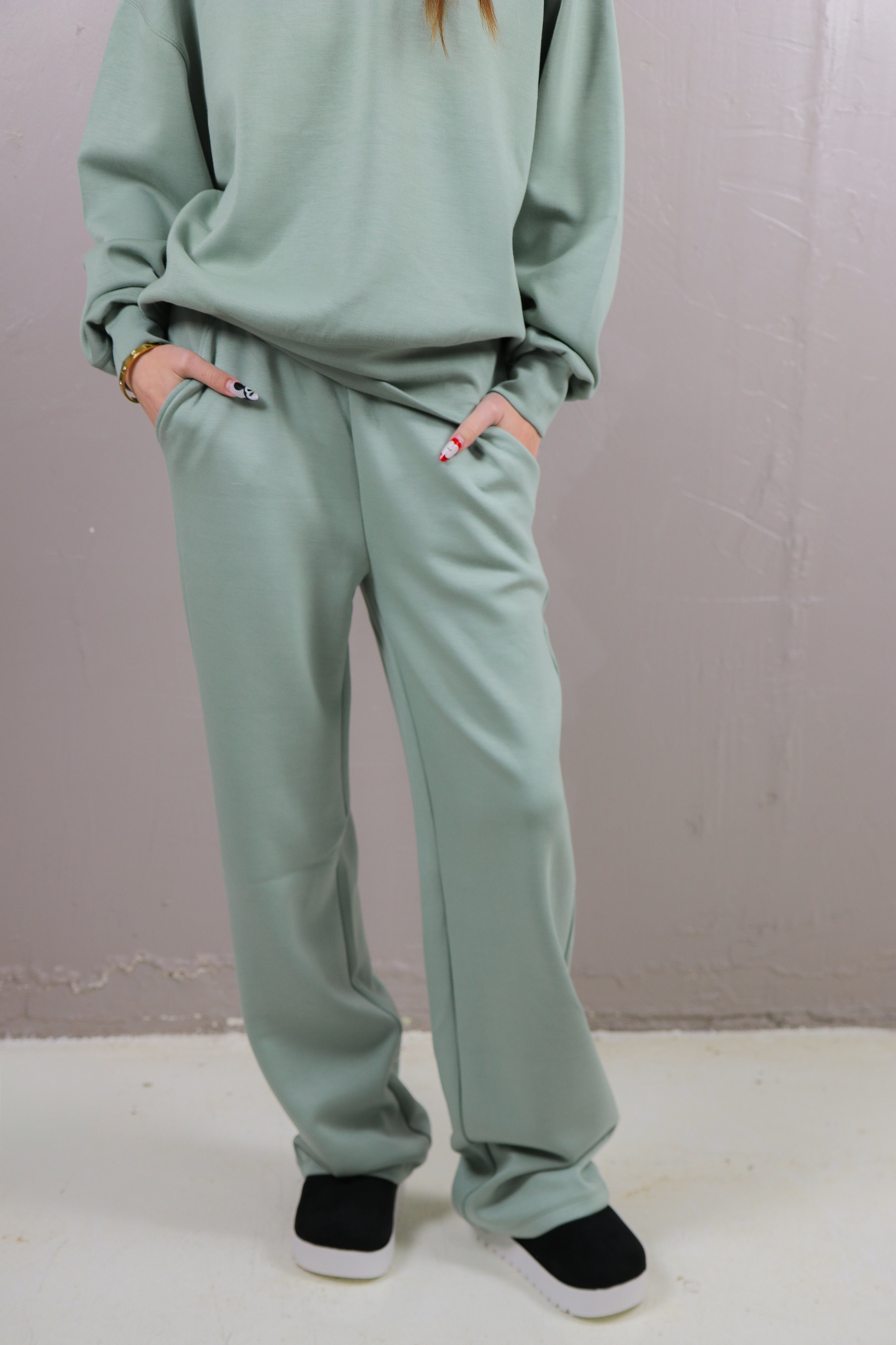 Pair the Softscape Lounge Pant with the matching cropped crew for a clean, elevated lounge look that works at home or on the go. Style with a fitted tank, oversized sweater, or denim jacket for easy versatility. The relaxed fit flatters without clinging, offering comfort across body types while still looking intentional and styled.