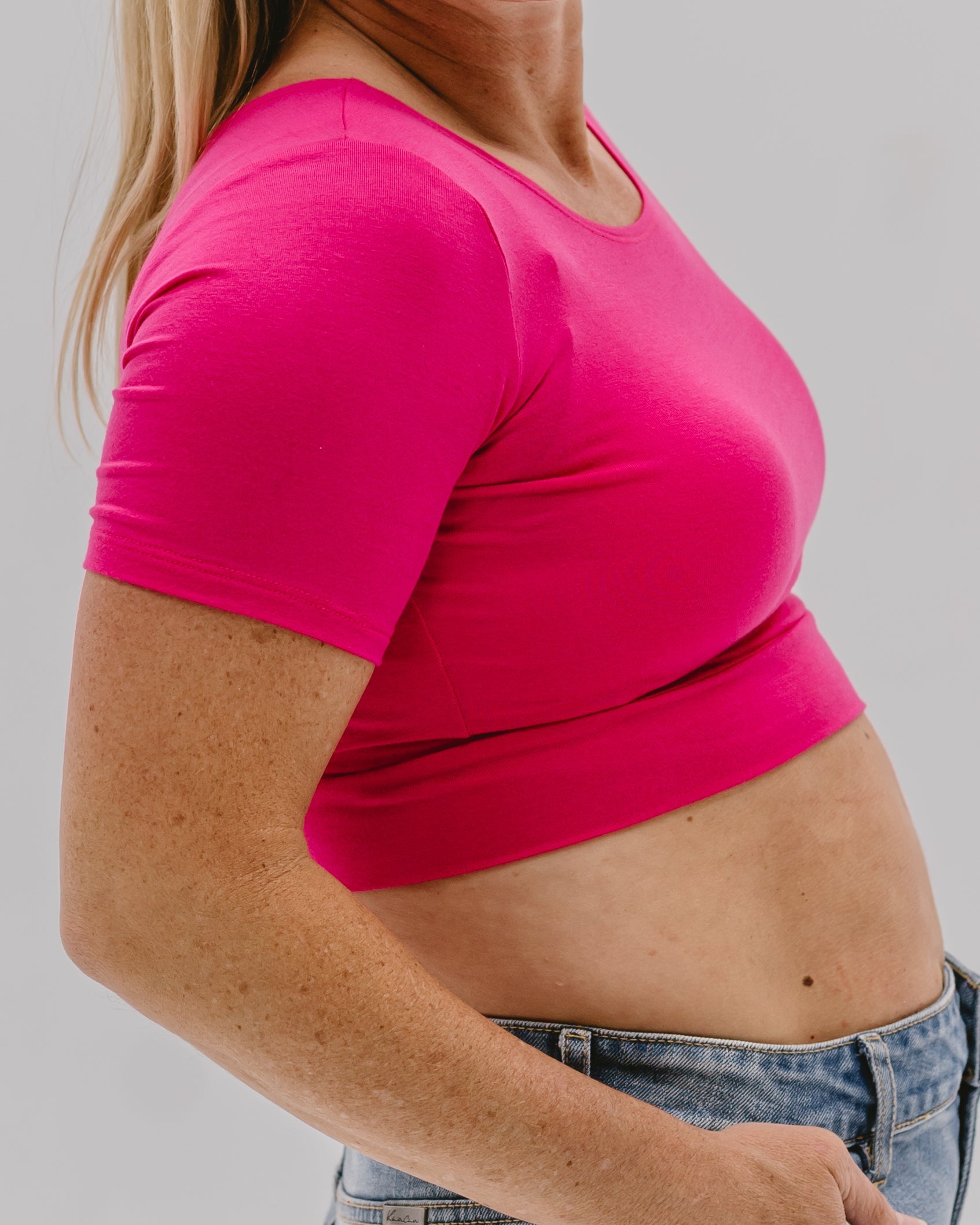 The Boyfriend Halftee is an amazing combination of comfortable and breathable fabric blend. Our signature "non-slip" band, and a boyfriend sleeve for unbeatable coverage you can't get anywhere else.