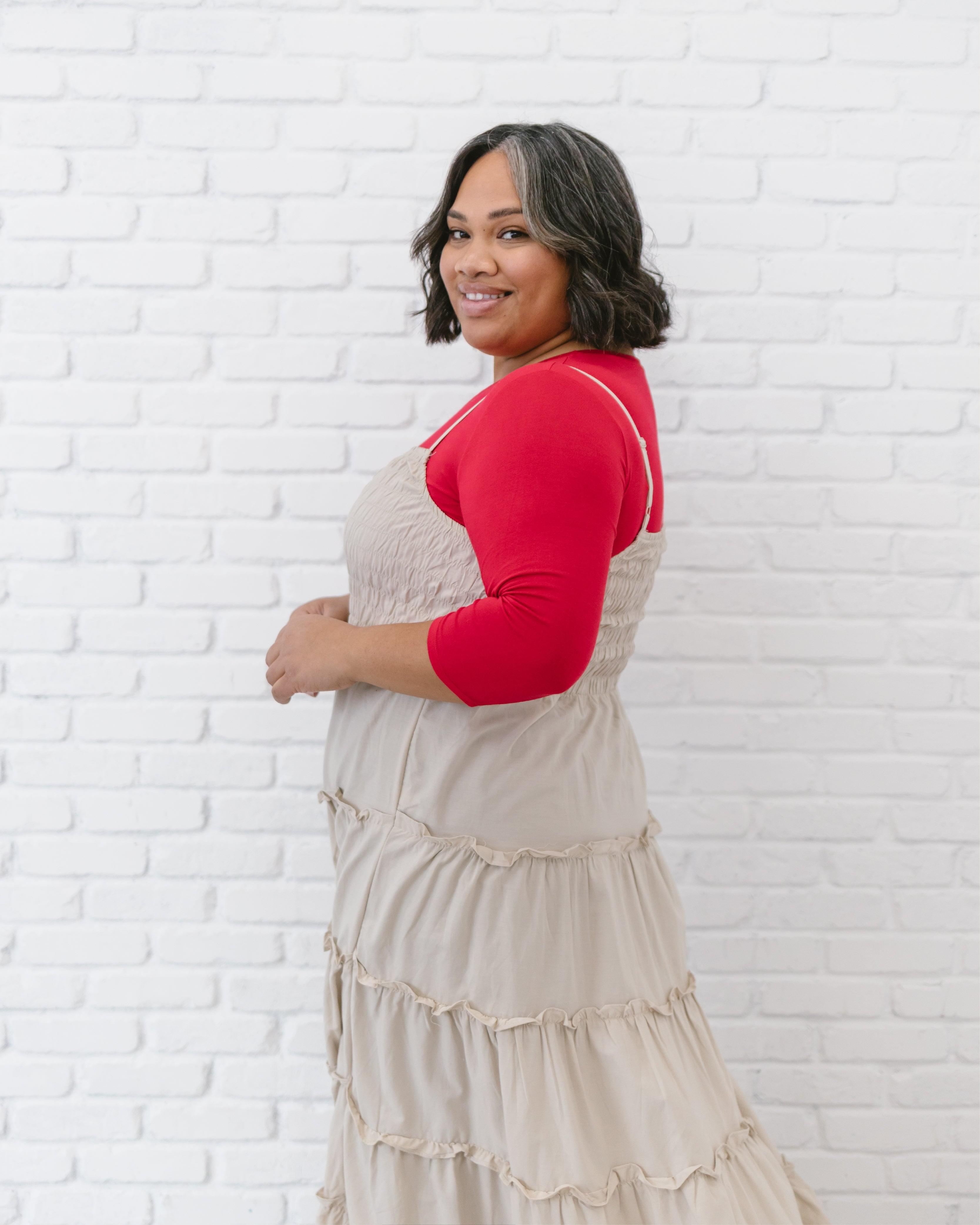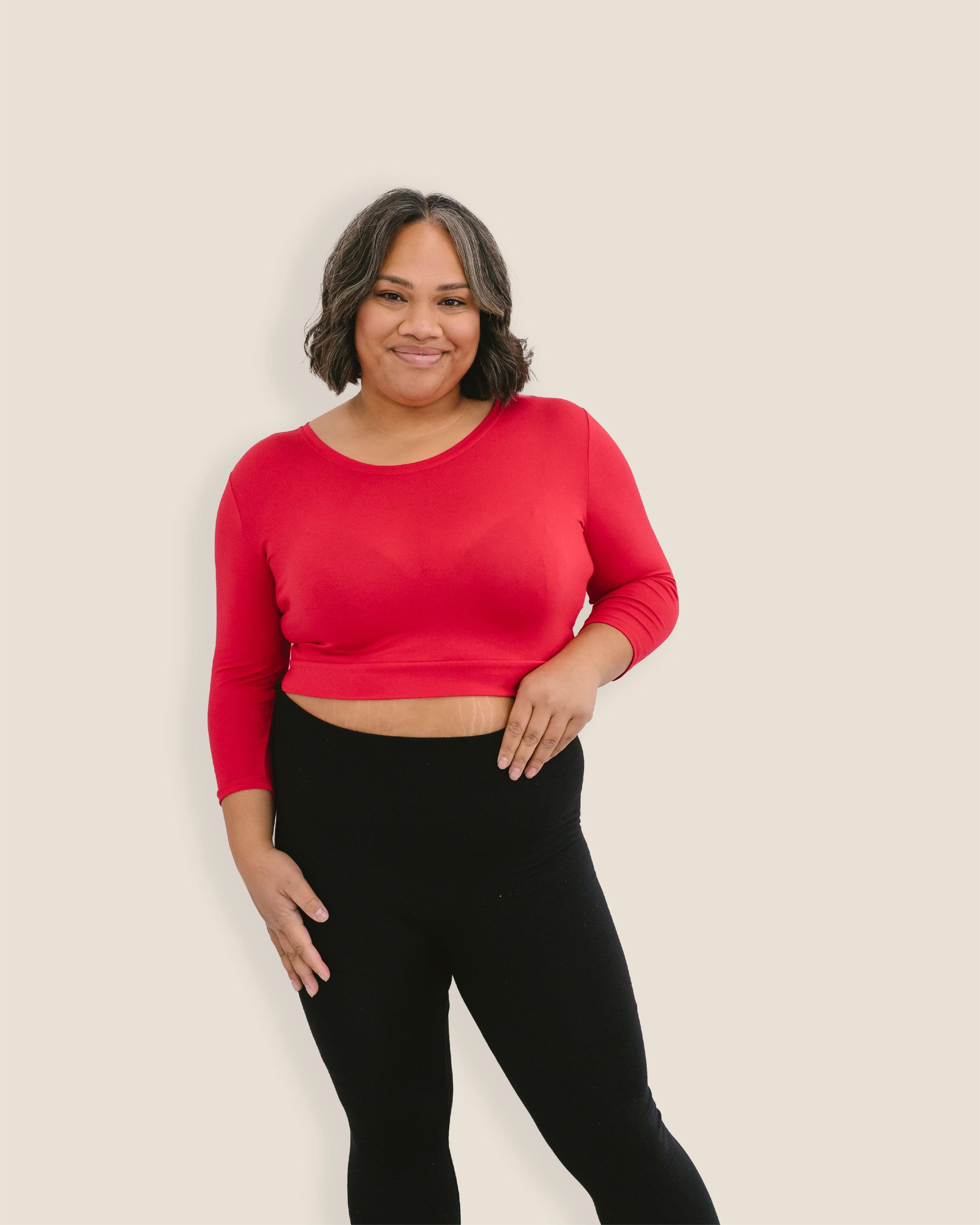 The same great 3/4 sleeve length as the original, now with a collarbone-covering neckline! This will surely become your new favorite—no more worrying about your tee slipping too low!