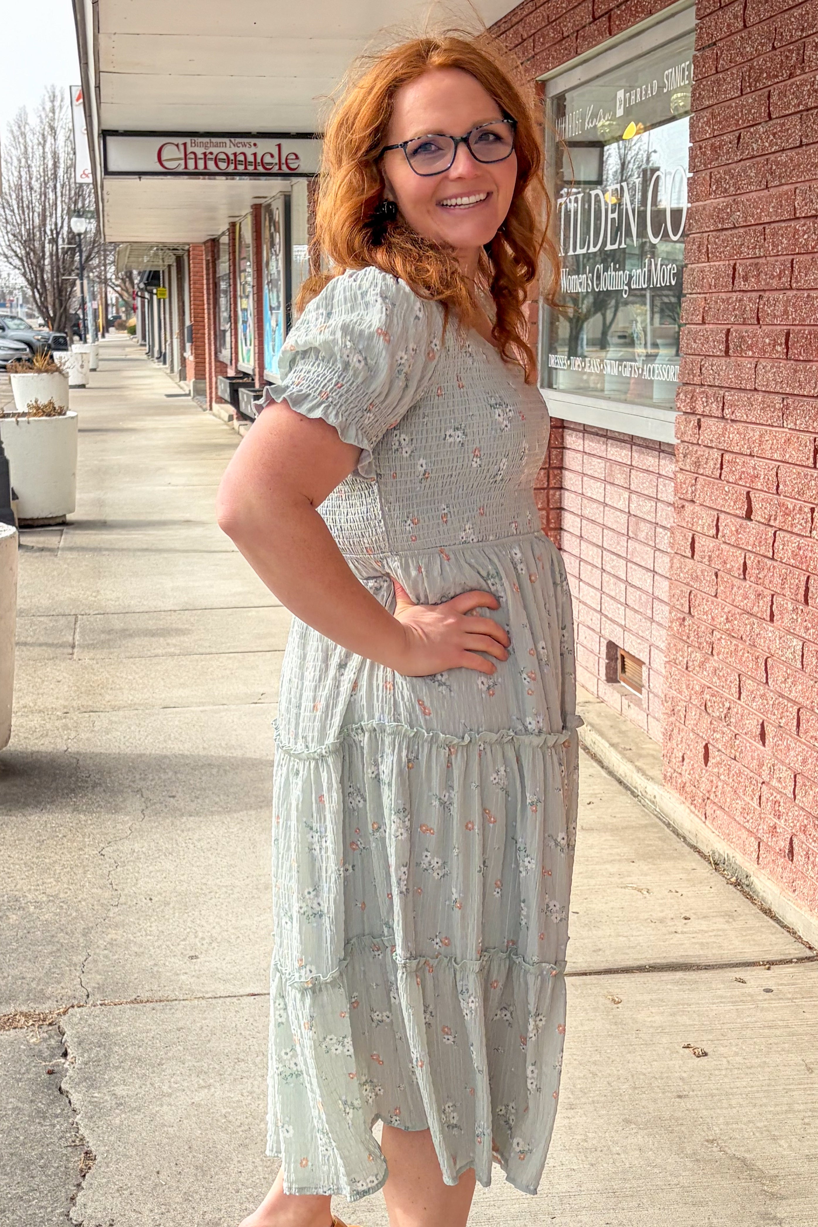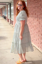 Soft, romantic, and effortlessly charming, the McCall Dress in Hint of Mint feels like a breath of fresh air. This midi-length beauty features a flattering smocked bodice that hugs comfortably without feeling restrictive, flowing into a tiered skirt that moves beautifully as you walk. The puff sleeves with delicate ruffle cuffs add just the right amount of vintage-inspired detail, making this dress feel special while still being easy to wear.